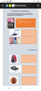 Name : Nauvia Fanisya Pridarezqita Class: 7b no absence : 26 Wednesday 18 januari 2023 Laptops Fiona : What is your favourite thing at home? Vea : playing laptop Fiona : what does it look like? Vea : has a screen, has a program, has a keyboard Fiona : it sounds nice Handphone Fiona : What is your favourite thing at home? Vea : playing handphone Fiona : what does it look like? Vea : media for communication, lighter, has a thin rectangular size, media information Fiona : it sounds nice bag (Tas) Fiona : What is your favourite thing at home? Vea : likes to collect bags Fiona : What does it look like? Vea : Has a hollow space to place objects. It has a shoulder strap or waist strap as a means of carrying a bag. Materials made of leather, woven fiber, or cloth. Is one type of inanimate object. Fiona : it sounds nice shoe (sepatu) Fiona : What is your favourite thing at home? Vea : Likes to collect shoes Fiona : what does it look like? Vea : is a solid object, has a size acc...